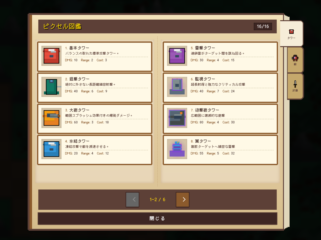 - Bestiary (Pixelate Dex) - New collection system to track discovered enemies, towers, and weapons